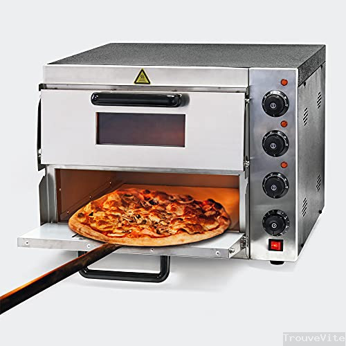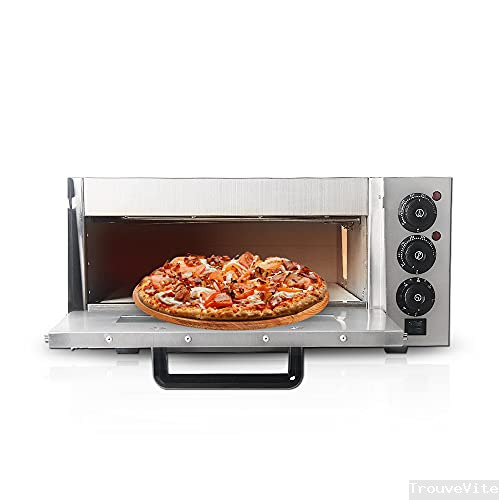 Royal Catering Four À Pizza Électrique Professionnel Tarte Flambée Flammekueche INOX 1 Chambre RC-POB140 (1 Cavité, 45-455 °C, 1 Pizza ø 32 cm, Pierre Réfractaire, Minuterie)