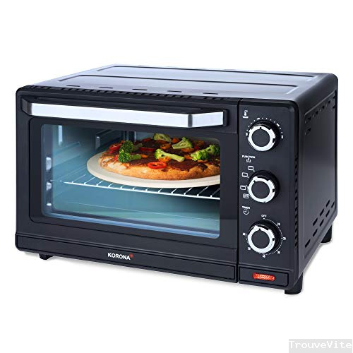 Korona 57156 Four à pizza multifonction | Noir | Acier inoxydable | 24 litres | Petit four à pizza | Mini four à grill | Grille de cuisson | Plaque de cuisson | Pierre à pizza | 1500 W