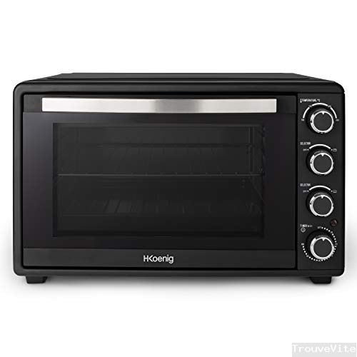 H.Koenig FO45 Mini Four 45L Electrique Posable Compact Multifonction Performant 2000W Programmable, 230°, Minuterie 60 min, Arrêt automatique, Porte vitrée, Grille et lèchefrite, Pizza, Plats