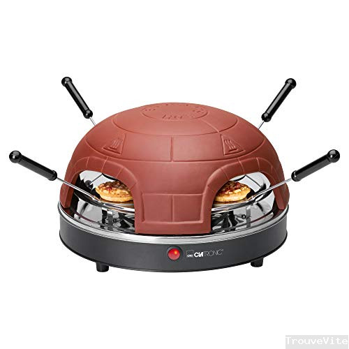 Clatronic PO 3681 Four à pizza électrique pour 4 personnes, couvercle en terre cuite, suggestions de recettes, emporte-pièce, 900 W, terre cuite/noir