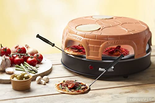 MaxxHome Four à pizza électrique - Couvercle en terre cuite fait à la main - pour mini-pizza - Four à pizza convenant à 6 personnes