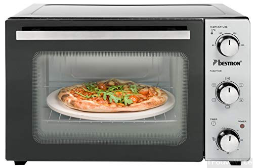 Bestron Four électrique compact avec broche rotative et pierre à pizza, 31 l, 1500 W, Acier inoxydable