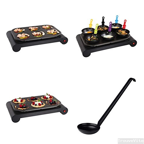 Wok Crepemaker Grill électrique pour 6 personnes (plaque de cuisson pour crêpes, revêtement antiadhésif, poêlons multicolores, 1000 W)