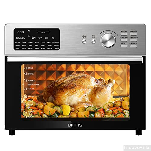 Oimis Four à air chaud 30L Friteuse air chaud 1800W, 21 en 1 Friteuse sans huile Dual Cook rôtissoire déshydrateur avec 21 Programmes Prédéfinis, 7 Accessoires, Livre de Recettes, Friteuse à air chaud