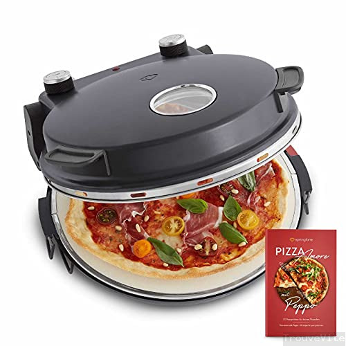 SPRINGLANE Four à Pizza électrique Peppo, 1200W, pour des pizzas comme au four en pierre à 350°C, avec minuterie et voyant y deux grandes pelles à pizza - anthracite