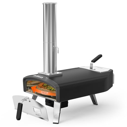 CYBER Série 12" Four à Pizza Extérieur, Four à Pizza en Acier Inoxydable avec Pierre à Pizza Rotative à 360°, Poêle à Pizza au Granulés de Bois pour Fêtes dans le Jardin, Camping et Pique-Niques