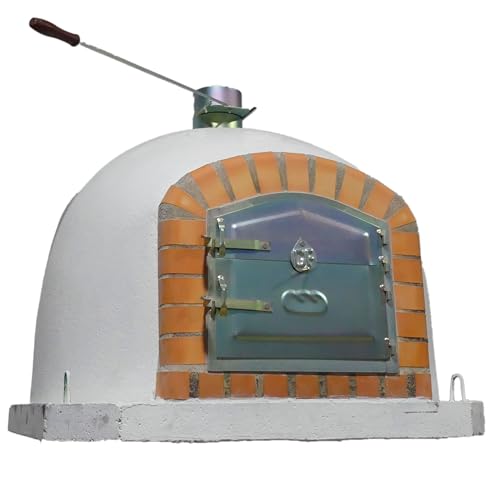 Four à bois artisanal 100 x 100 cm avec porte métallique et base en béton | Four extérieur pour rôtis et pizzas | Fabrication manuelle à haute inertie thermique