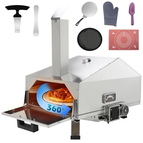 VEVOR Four à Pizza d’Extérieur 12 pouces, Four à Bois Portable, Granulés et Copeaux et Charbon de Bois Tri-Combustible, avec Pierre à Pizza Rotative à 210 ° et Pelle, pour Camping Jardin Arrière-Cour