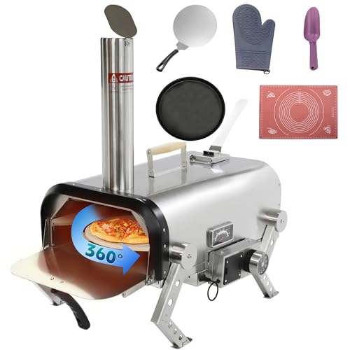 ROBOTDOG Série 12" Four à Pizza Extérieur, Four à Pizza en Acier Inoxydable avec Pierre à Pizza Rotative à 360°, Poêle à Pizza au Granulés de Bois pour Fêtes dans le Jardin, Camping et Pique-Niques