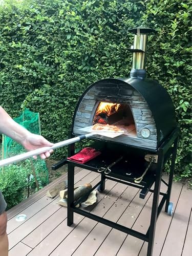 Four à Pizza d’Extérieur en Acier Noir Multi-Combustible Bois Charbon Granulés – Double Paroi – Thermomètre Intégré – Pizzas Authentiques sur Pierre – Cuisson en 60s 400°C [Pelle & Pierre INCLUSES]
