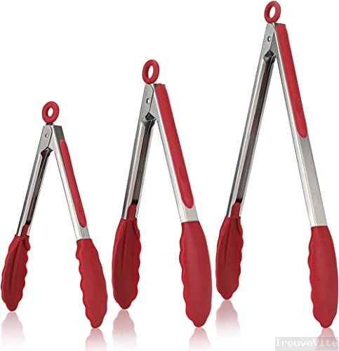 Pinces de Cuisine NED, Pinces de Cuisine 7/9/12 Pouces, avec Embouts en Silicone antiadhésif résistant à la Chaleur de 600 °F, pour grillades, salades, barbecues, fritures, Service, Lot de 3-Black