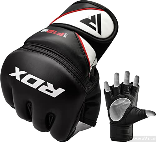 RDX MMA Gants d'entraînement, Maya Hide Cuir, Mitaines Boxe Grappling Sparring, Ventilé Ouvert Paume, Protection Poignet Main, Kickboxing, Muay Thaï, Arts Martiaux Combat Gloves, Homme Femme