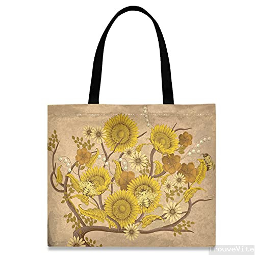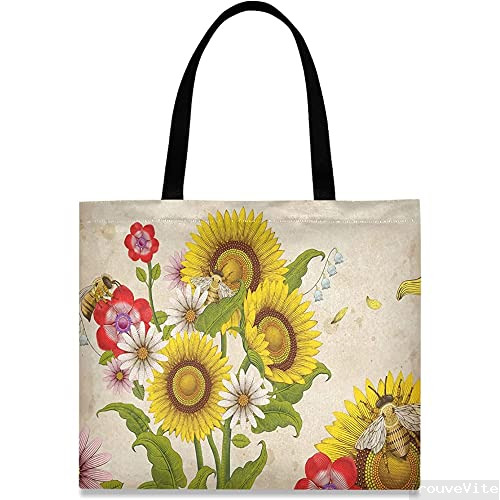 601 Sac À Provisions Abeilles À Miel Fleurs Rétro Sac Fourre Tout Réutilisable Sac En Toile Réutilisable Tote Bags Pour Scolaire Dames Piscine 40X50Cm