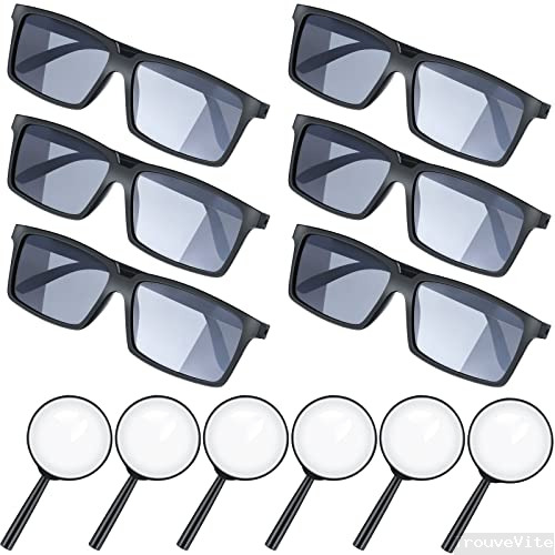 BBTO Paquet de 6 Lunettes d'Espion Spy Paquet de 6 Kits de Détective pour Enfant Lunettes de Vue Arrière Loupe de Détective Mini Loupe en Plastique Portable pour Fête Anniversaire Halloween