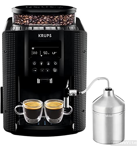Krups YY4081FD Machine à Café Automatique avec Broyeur à Grains Expresso avec Mousseur à Lait Pot Inox Cafetière Café Grains Pression 15 Bars Thermoblock Cappuccino Espresso Noir