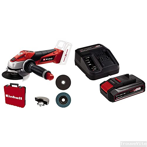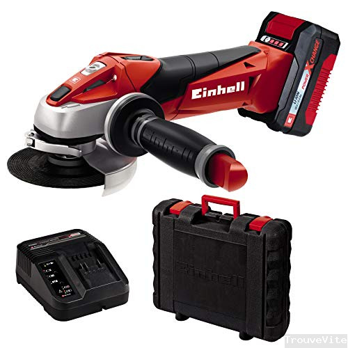 Einhell Meuleuse d’angle sans fil TC-AG 18/115 Li Kit Power X-Change (18V, 115 mm diamètre du disque, 28 mm profondeur de coupe, démarrage doux, sans disque de coupe, avec 3,0 Ah batterie et chargeur)