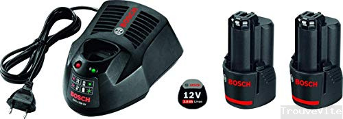 Bosch 1600A00X7E Batterie Rechargeable Li-Ion GBA 12V 2× 3.0 Ah + GAL 1230 CV - Batteries rechargeables (3000 mAh, Lithium-Ion (Li-Ion), 12 V, Noir, 2 Pièce(S))