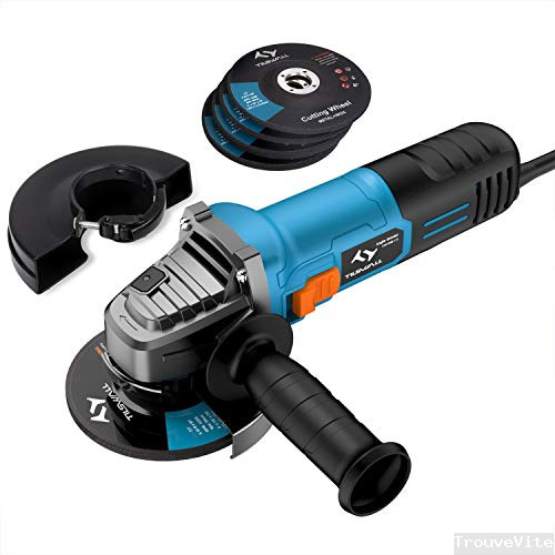 Tilswall Meuleuse d'angle 125 MM 860W Meuleuse angulaire 12000 RPM 10PCS avec 1 Poignée,5 Disques de Coupe/Meulage,2 Capot de Protection,1 lot de Balai de Charbon,1 Clé pour Meulage/Découpage