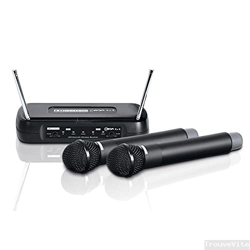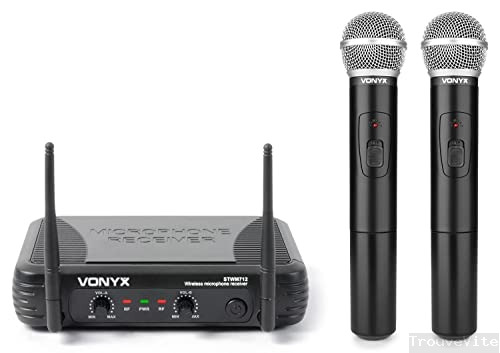 Vonyx STWM712 Système micro sans fil VHF 2 canaux, Idéal pour les événements professionnels, Transmission jusqu'à 50 mètres, jusqu'à 8 heures d'autonomie