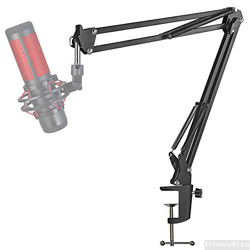 YOUSHARES HyperX Quadcast Perche de Microphone, Réglable Pied de Quadcast Support de Suspension à Ciseaux Micro, Support de Microphone avec Pince de Bureau Fixation & Montage Mural