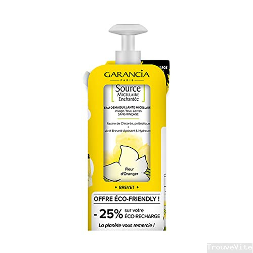 Garancia Source Micellaire Enchantée Eau Démaquillante Micellaire Fleur d'Oranger 400 ml + Éco-Recharge 400 ml