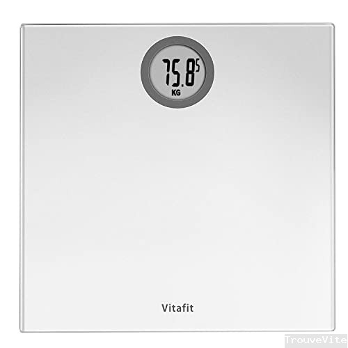 Vitafit Pèse-personne Électronique,Pese Personnes Balance Numériques avec technologie Step-On,5kg-180kg, Affichage LCD, Argent Elégant