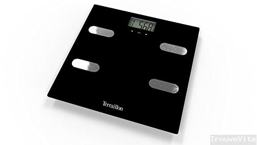 TERRAILLON Pèse Personne FITNESS - Impédencemètre Complet - IMC - 8 Utilisateurs - Compact et Ultra-plat - Capacité 150Kg - Noir