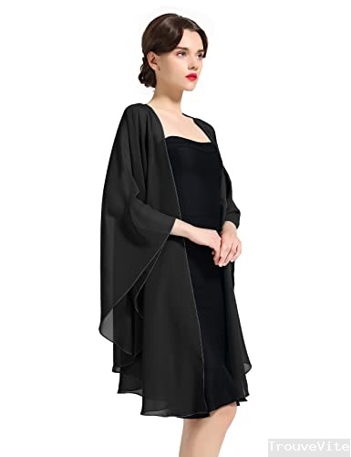 BEAUTELICATE Femme Étole Châle Elégant Foulard Boléro Cape en Mousseline de Soie Pour Robe de Soirée Mariage Mariée Cérémonie(Noir, Taille Unique)