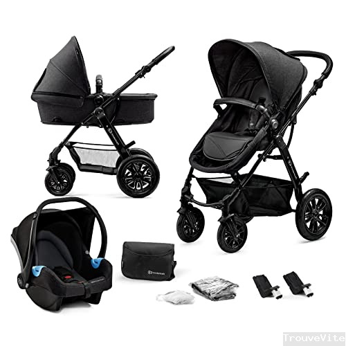 Kinderkraft Poussette 3 en 1 MOOV, Trio, Enfant, Siège Auto, Accessoires, Noir
