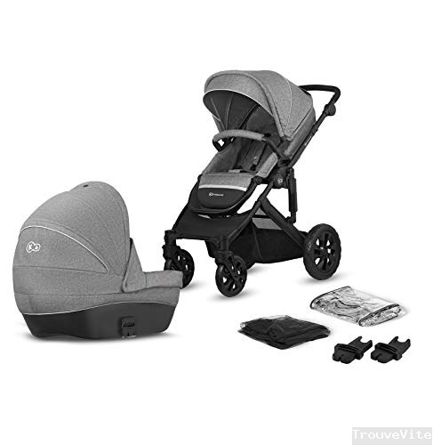 Kinderkraft Landau 2 en 1 avec système de voyage, poussette pliable, couchée, nacelle, accessoires, housse de pluie, chancelière pour nouveau-né, de la naissance à 3,5 ans, gris