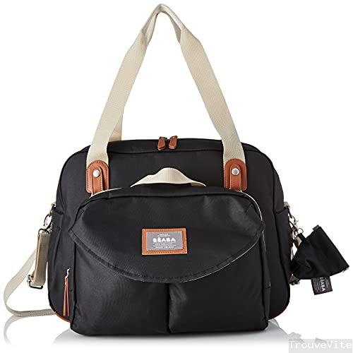 BÉABA, Sac à Langer Genève II, Modulable, Grande contenance, Rangements multiples, Pochette avant amovible, Matelas à langer, Pochette repas isotherme, Système attache poussettes, Noir