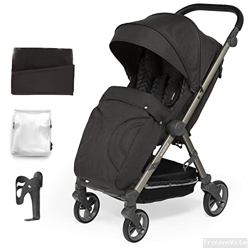 skiddoü poussette à hamac légère Mell, poussette de voyage pliable, poussette pour enfant, roues assurant l’amortissement, dossier réglable, moustiquaire, habillage pluie, jusqu’à 22 kg, le noir