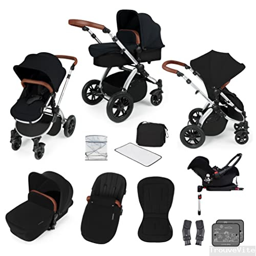 Ickle Bubba Stomp V3, Système de voyage tout-en-un incluant une nacelle, une poussette réversible et un siège auto Galaxy groupe 0+ avec base ISOFIX (Cadre noir sur argent)
