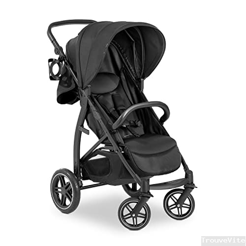 Hauck Poussette Trois Roues Rapid 3R / Capote Pare Soleil XL UPF 50+ / Grandes Roues Tout Terrain / Jusqu'à 25 kg / Pliable Compacte / Hauteur Réglable / Position Couchée / Porte Gobelet / Noir