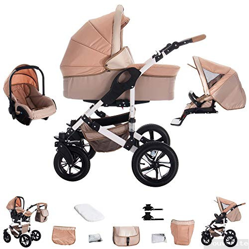 bebebi | modèle Zurich | Air pneumatiques en blanc | 3 en 1 Combi Poussette | couleur : charmey