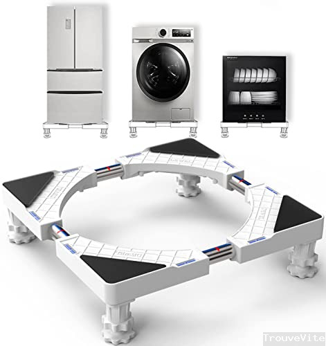DEWEL Support de Machine à Laver Base pour Frigo Lave-linge Sèche-linge Réglable en Longueur 50cm-66cm Support Charge 300 kg avec l'Effet de Réduiction du Bruit