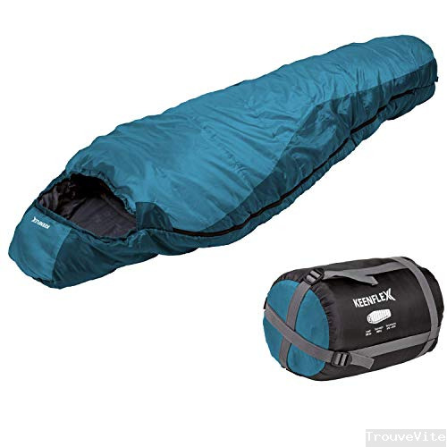 KeenFlex – Sac de Couchage – 3 Saisons Chaud léger et Compact étanche avancé Système de contrôle de la Chaleur – Idéal pour Le Camping randonnée randonnée – Sac de Compression Inclus (Bleu Foncé)