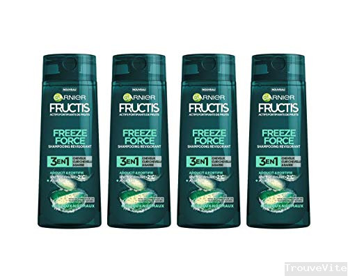 Garnier Fructis Freeze Force Shampooing 3 en 1 Aloe Homme Cheveux Cuir Chevelu/Barbe 250 ml - Lot de 4