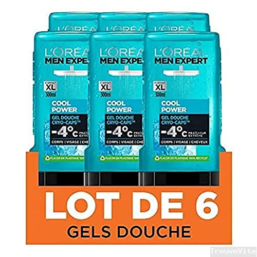 L'Oréal Men Expert Cool Power Fraicheur Extrême Gel Douche pour Homme 300 ml - Pack de 6