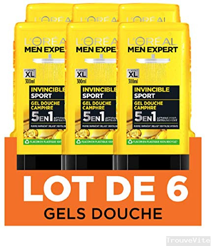 L'Oréal Men Expert Gel Douche pour Homme Invincible Sport 300 ml - Pack de 6
