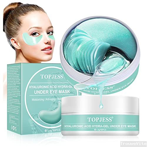 Masque Yeux, Masque Yeux Collagène, Eye Mask, Hydrogel Eye Patch, Masque hydratant pour les yeux à l'acide hyaluronique, Anti-âge, Réduit poches, rides, ridules, relâchement, yeux gonflés - 60Pcs