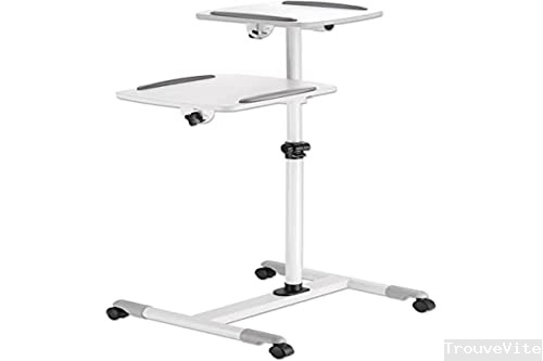 Manhattan 461726 Support de chariot pour projecteurs et ordinateurs portables, deux plateaux pour appareils jusqu'à 10 kg chacune, inclinaison de - / + 35 °, rotation à 360 °, hauteur réglable