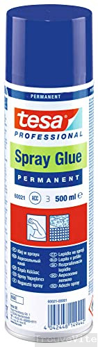 Tesa 60021 - Colle en Spray Permanente 500 ml - Glue Aérosol pour le Collage Permanent de Matériaux Légers et Moyens avec Surfaces Lisses ou Inégales - Sans Silicone