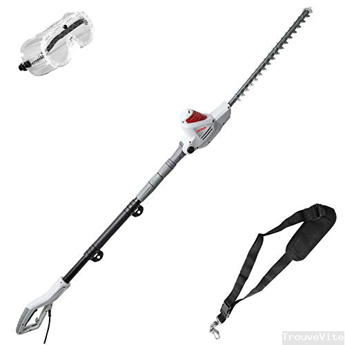 Ikra Taille-haie télescopique électrique ITHS 600, Longueur de Coupe 51cm, Sangle & Lunettes de sécurité Incluse