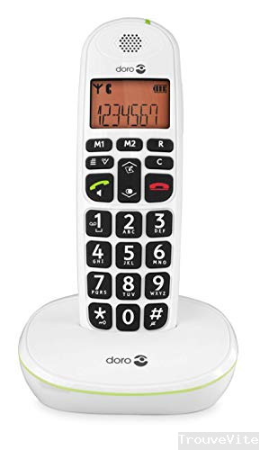 Doro PhoneEasy 100w Téléphone sans Fil DECT pour Seniors avec Grandes Touches et Son Amplifié (Blanc X 1) [Version Française]