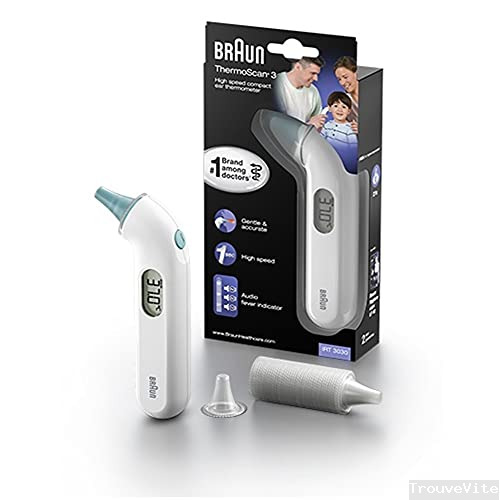 Braun Thermomètre auriculaire infrarouge ThermoScan3 IRT3030 & Embouts jetables LF40