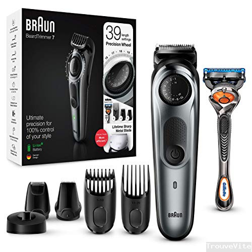 Braun 7 Tondeuse Électrique Homme Cheveux Et Barbe, Noir/Argent Métallisé, Lames Affûtées Et Inusables, 39 Réglages De Longueurs, BT7240