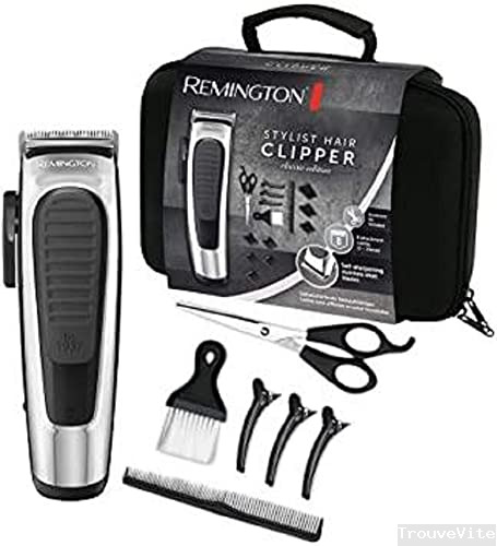 Remington Tondeuse Cheveux Hommes [Kit Coiffeur Professionnel] Stylist (Lames Acier Inoxydable Auto-Affûtées, Secteur-Sans fil, 8 Sabots, Peigne, Ciseaux, pinces, Mallette) Tondeuse cheveux HC450