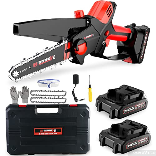 Mini Tronçonneuse a Batterie, BOBSVILLE Tronconneuse Electrique sans Fil 24V 6 Pouces Mini Tronconneuse avec 2 Batterie et 2 Chaînes, Coupe Branche Electrique pour Jardinage, Elagueurs, Coupes à Bois