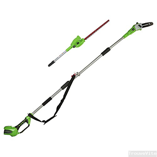 Greenworks Élagueuse et Taille-haie sur perche à batterie 2-en-1 G24PSH (Li-Ion 40V, lame de 20 cm/51 cm, épaisseur de coupe 18 mm, perche démontable de 240 cm, batterie et chargeur non inclus)